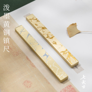 泼墨镇尺实心纯黄铜镇纸尺毛笔书法压纸初学者学生创意文房四宝书法压宣纸压书神器专用书房书案小摆件