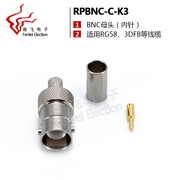 优质纯铜 RPBNC-C-K3 Q9-K-3 BNC母头 压接 接-3馈线 反向内针