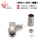 SMA-C-JW3 SMA 90度弯角 标准公头内螺内针 接50-3电缆 镀镍