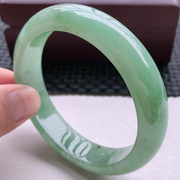 缅甸天然A货晴水绿宽边正装冰糯种翡翠手镯 62.81g 内径57.5mm