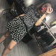 地素大使2018夏装新款假两件宽松显瘦休闲短袖蕾丝连衣裙2F2O401