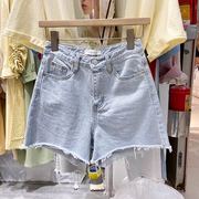 CESTELLE2020春装新款韩版百搭复古洗水毛边牛仔短裤女百搭直筒裤