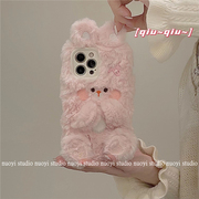 毛绒发夹小兔子适用iphone12/13Promax手机壳苹果11/xr女xs秋冬8p