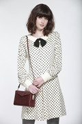 Miss patina英国官网正品代购 2014秋冬新品蝴蝶领结波点白连衣裙
