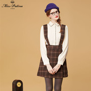 MISSPATINA英国官网代购2019秋冬新品英伦百搭格纹拆卸背带半身裙