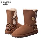 澳洲代购SHEARERSUGG正品雪地靴女一粒扣单扣5803中筒动物纹拼色