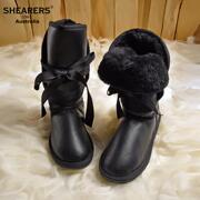 澳洲代购SHEARERSUGG皮毛一体专柜正品雪地靴女roxy 中筒短靴黑色