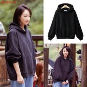 代购宋茜明星同款带帽套头加绒加厚黑色卫衣女2019秋冬韩版宽松潮