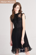 Pisces品牌集合 HelloMirror姜梓新隋雨蒙优依同款波点压褶少女裙