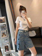 kimhekim爱心牛仔短裤女夏季21新款设计感小众气质高腰显瘦五分裤