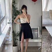 2021年春季kimhekim韩国设计师黑色收腰连衣裙女时髦抹胸气质短裙