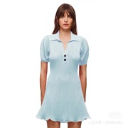 self portrait冰蓝清新高腰修身罗纹连衣裙女夏21小众气质短裙ins