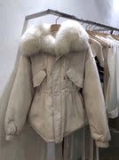 purple韩国羽绒服女20冬LIFE东大门宽松时髦狐狸毛抽绳派克服外套