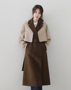 韩国设计师双面羊绒大衣女中长款20冬优雅淑女长马甲短外套两件套