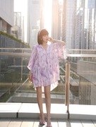 GANNI北欧水墨晕染印花连衣裙女夏21喇叭袖荷叶边设计感小众仙女