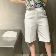 清爽小众21ss白色短裤女夏宽松直筒显瘦百搭设计感高腰阔腿五分裤