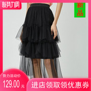 伊芙丽蛋糕裙女2020春装新款蕾丝网纱裙百褶裙半身裙子1B3940611
