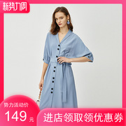 伊芙丽连衣裙2020夏季新款韩版温柔系收腰五分袖裙子女1B3990561