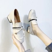 35-42码 大码女鞋百搭小皮鞋女英伦风粗跟中跟两穿秋季网红单鞋41