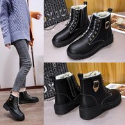35-43码 大码女鞋41加厚雪地靴英伦棉靴女皮毛一体马丁靴大棉鞋42