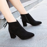 尖头粗跟高跟鞋秋季短靴女鞋特大号40 41 42 43 44 45特大码女靴