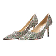 Jimmy Choo周仰杰22年秋冬水晶饰五彩碎屑粗闪粉平底鞋女单鞋瑕疵