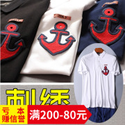 4折 水手风时装 丝光珠地面料 船锚刺绣 男士翻领短袖T恤D704大码