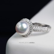 「满月之辉」日本Akoya海水珍珠18K白金钻石围镶戒指气质干净天女