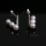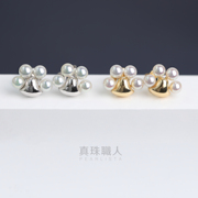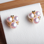 「简约即大气」三珠百搭日本akoya海水珍珠18k金耳钉镜面光泽