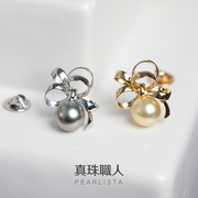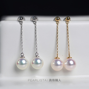 真珠职人【有猫在】日本Akoya海水珍珠18K黄金白金猫爪耳钉彩凛