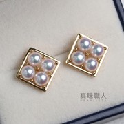 「方寸之间」日本Akoya海水珍珠18K金四珠耳钉 彩凛珠品质 气质款