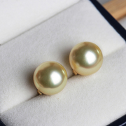 「满月级金珠」天然亮金色南洋金珠18K黄金简洁耳钉 百搭不挑人