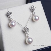「暗香」日本Akoya珍珠18K白金白色蓝宝石梅花耳钉吊坠 玫瑰切割