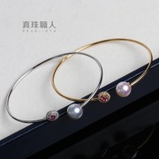 「珍珠开口手镯」日本Akoya海水珍珠18K金镶钻及碧玺手镯记忆弹性