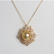 「繁花似锦」天然色澳洲南洋金珠南洋白珠18k金钻石吊坠