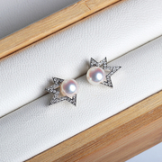 「温柔又硬气」日本Akoya海水珍珠18K白金钻石星星耳钉 新经典