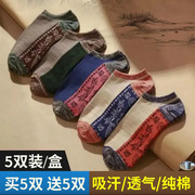 佐马仕夏季个性民族风国风男士透气吸汗船袜潮短袜复古男士厚船袜