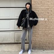INchoose u皮毛一体外套女秋冬羊羔毛中短款皮衣女韩版宽松机车服