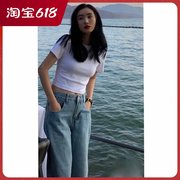 INchoose u笑笑家高腰阔腿牛仔裤女新款显瘦宽松垂感拖地直筒裤子