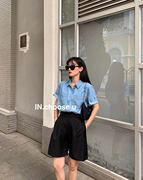INchoose u新款浅色天丝牛仔衬衫女日系复古港风短袖百搭洋气上衣