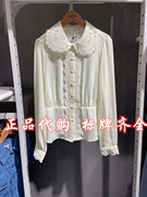 Lagogo拉谷谷2020年秋款蕾丝边雪纺长袖衬衫女JCCC437B11