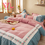 WishLane高档欧式刺绣牛奶绒四件套冬季加厚双面绒珊瑚绒法兰绒