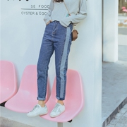 рadidasе2019夏季新款韩版学院风拼接裤女小清新卷边九分裤