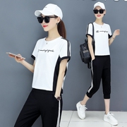 рadidasе大码纯棉休闲运动服套装女夏季短袖七分裤新款显瘦宽松