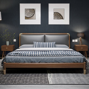 北欧实木床真皮床现代简约1.5M主卧轻奢婚床1.8M白蜡木双人床软床