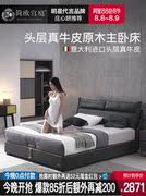北欧皮床真皮床主卧简约现代小户型轻奢1.51.8米软包皮艺双人婚床