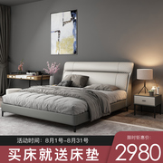 北欧皮床真皮床简约现代小户型软包床双人床主卧婚床齐边床1.8米