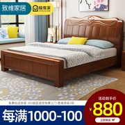 实木床1.8米双人床主卧婚床1.5米中式单人床经济型气压高箱储物床