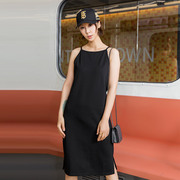 NancyJia黑色中长款背带连衣裙女装2019夏新款修身露肩吊带裙子夏