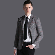 潮诀复古格子西服男士上衣2019春秋新款西装英伦时尚长袖外套1109